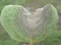該病害不常發(fā)生。20~26℃的持續(xù)偏低溫,連陰雨天氣發(fā)病,汁液傳播。主要是通過刺吸式口器的蟲子進行傳播,如葉蟬、蚧殼蟲。