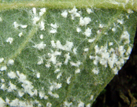 以成蟲、若蟲群集在葉背、嫩梢上刺吸危害,棲息時頭翹起,有時可見數(shù)十頭群集在新梢上,排列成一條直線;引起被害植株發(fā)生煤污病或嫩梢萎縮,畸形等,嚴重影響植株的生長和發(fā)育。