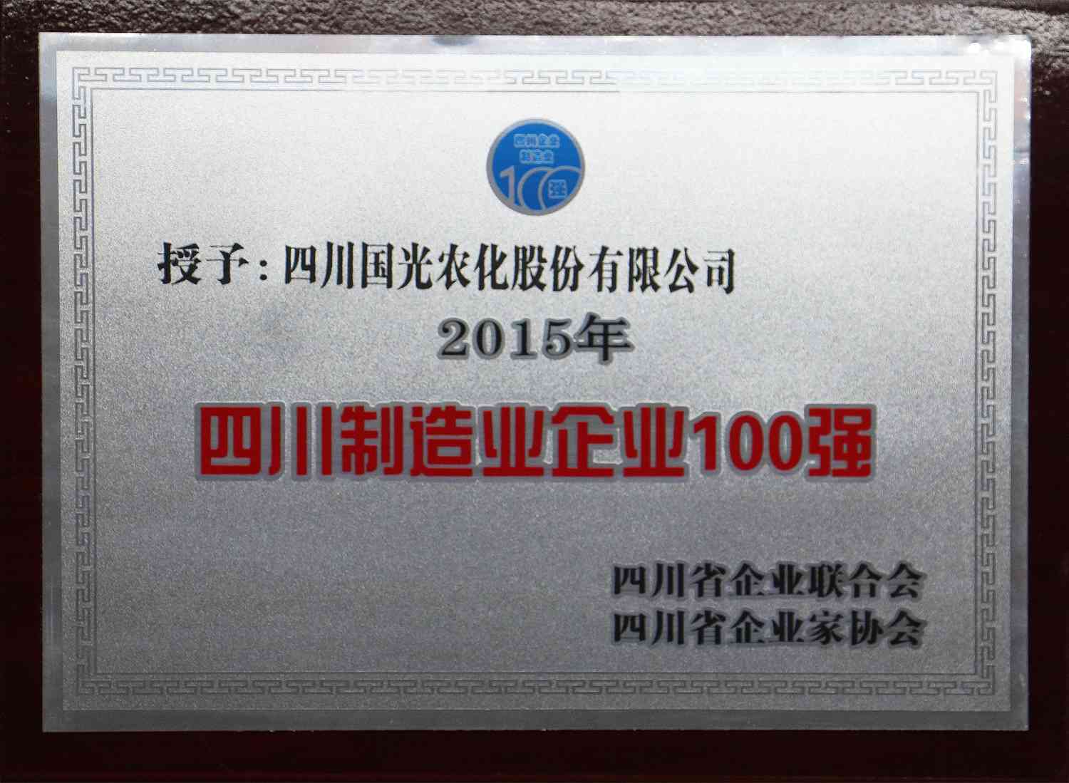 2016年1月15日,由四川省企業(yè)聯(lián)合會/企業(yè)家協(xié)會召開的第八屆三次理事會全體大會暨2016年企業(yè)家年會上國光公司及子公司分別榮獲2015年《四川制造業(yè)企業(yè)100強(qiáng)》、《四川服務(wù)業(yè)企業(yè)100強(qiáng)》稱號。