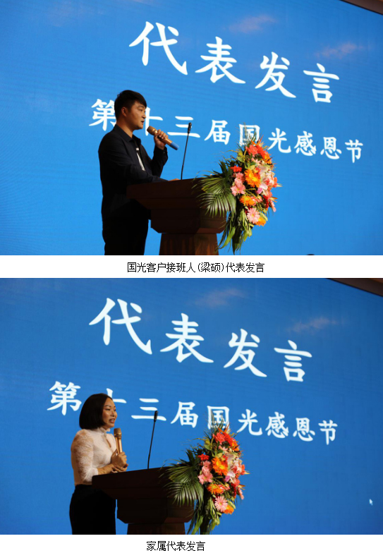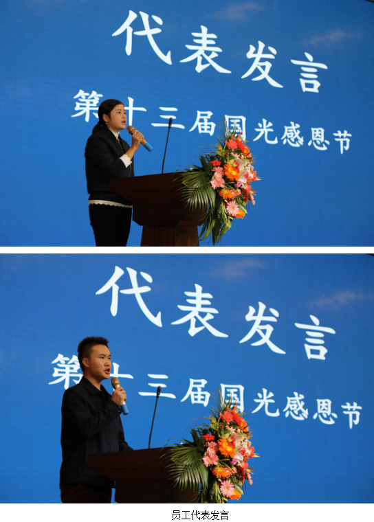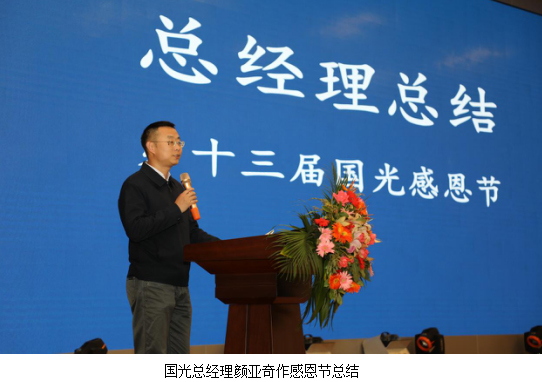 國光總經(jīng)理顏亞奇作了感恩節(jié)總結(jié),表示:“一個(gè)真正愛護(hù)員工的企業(yè),會對員工的健康、家庭、子女各方面進(jìn)行關(guān)心,此次我們擴(kuò)展感恩節(jié)的內(nèi)容及形式,邀請國學(xué)老師幫助員工建立良好的家風(fēng)家教;通過案例幫助員工教育好子女;進(jìn)行了職業(yè)健康、法制、防止上當(dāng)受騙等教育,都是公司對員工及員工家屬具體感恩行動的表現(xiàn),這些教育起到的作用遠(yuǎn)大于物質(zhì)和金錢。國光是一個(gè)大家庭,國光每一位員工都是大家庭中的一份子,只有每一位成員的小家過好,國光這個(gè)大家才會好,我希望全體國光人都能從本次感恩節(jié)教育中得到啟發(fā),從中受益,為自己的‘小家’也為共同的‘大家’活出更好的自己,貢獻(xiàn)更多的力量!