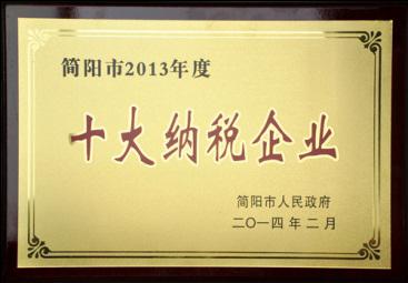 公司獲評簡陽市2013年度十大納稅企業(yè)