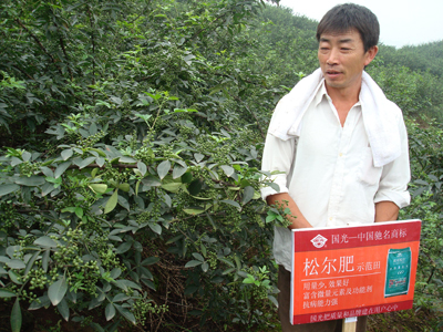 青花椒的施肥量: 不同生長時(shí)期對(duì)肥料的需求量有一定的差異。歸納為每年苗期需要純氮20-40g、純磷10-20g、純鉀10-20g、有機(jī)肥1-2kg;每年盛產(chǎn)期青花椒樹需要純氮200-400g、純磷100-200g、純鉀200-400g、有機(jī)肥2-10kg,另外青花椒果實(shí)對(duì)鈣的需求量較大,在收獲前其對(duì)鈣的需求量是所有養(yǎng)分中的最大量,每年的補(bǔ)充量基本相當(dāng)于純磷的需求量即100-200g。