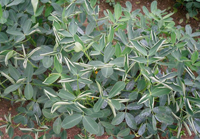 發(fā)病規(guī)律:病菌以菌核或菌絲在土壤中或病殘?bào)w上越冬,可以存活5-6年,大部分分布在1~2cm的表土層中。以菌核在2.5cm以下發(fā)芽率明顯減少,在土中7cm處幾乎不發(fā)芽。翌年菌核萌發(fā),產(chǎn)生菌絲,從植株根莖基部的表皮或傷口侵入,也可侵入子房柄或莢果。種子也可帶菌。病菌在田問靠流水或昆蟲傳播蔓延。高溫、高濕、土壤粘重、排水不良、低洼地及多雨年份易發(fā)病。雨后馬上轉(zhuǎn)晴,病株迅速枯萎死亡。連作地、播種早的發(fā)病重。
