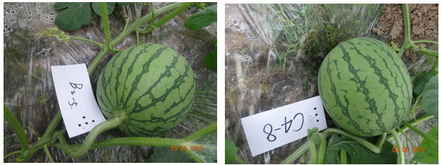 2015年4月,我們江西瑞金武陽(yáng)鎮(zhèn)帥童無籽瓜上做了國(guó)光座瓜靈(0.1%氯吡脲)提高西瓜坐瓜率試驗(yàn)示范。試驗(yàn)結(jié)果表明:在西瓜雌花開放當(dāng)天,用國(guó)光座瓜靈10毫升兌水1.5-2公斤,噴施瓜胎正反面,可明顯提高西瓜坐果率,用藥的西瓜生長(zhǎng)良好,果型端正。