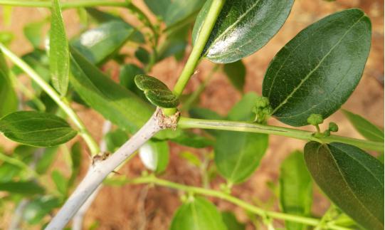發(fā)病后期,棗吊發(fā)病部位失水,有的棗吊則出現(xiàn)斷裂,花蕾脫落。發(fā)生嚴(yán)重時(shí)花蕾較少甚至形不成花蕾,座果率顯著降低,甚至座不住果子。后期則棗吊干枯,棗吊上坐住的果實(shí),由于營(yíng)養(yǎng)不良,品質(zhì)受到很大影響.
