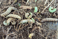 1.年發(fā)生代數(shù) 一年4-5代,在山東和浙江經(jīng)調(diào)查都是如此。以蛹在土下3-5厘米處越冬。(以危害白三葉為例:2代開始(7月上旬)在三葉草草坪上開始為害,出現(xiàn)一個(gè)個(gè)蟲團(tuán);3、4代(8-9月)為害加重,為主害代,并出現(xiàn)世代重疊,能成片成片吃光草坪,使綠化景觀效果遭受到嚴(yán)重的破壞。)