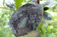 煤污病主要危害植物的葉片,也危害嫩枝、花器等部位。發(fā)病初期在葉面、枝梢表面上形成圓形黑色小霉斑,有的沿主脈擴展,后擴大連片,使整個葉面、嫩梢上布滿黑霉層,形成較厚的黑色或黑褐色的煤煙狀層,嚴(yán)重時形成黑色霉層,有時在干燥條件下霉層開裂剝落。